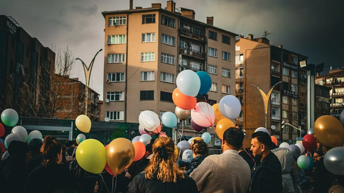 Topics: #house #balloon #people